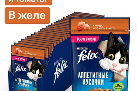 Корм для кошек FELIX Аппетитные Кусочки Курица с томатами пауч 75г (упаковка - 26 шт) доставка