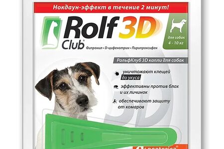 Rolf Club 3D Капли от клещей и блох для собак (4-10 кг.) доставка
