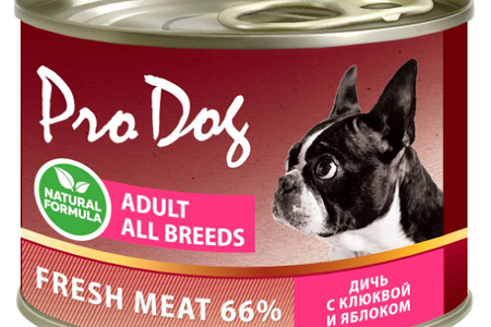 Консервы для собак Pro Dog из дичи с клюквой и яблоком доставка