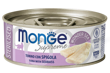 Корм для кошек MONGE Supreme sterilized для стерилизованных, тунец с морским окунем банка доставка