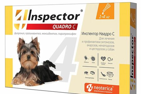 Капли для собак INSPECTOR Quadro от внешних и внутренних паразитов (до 4кг) 1 пипетка доставка