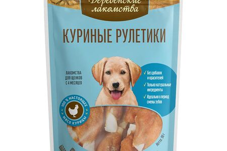 Лакомство для щенков ДЕРЕВЕНСКИЕ ЛАКОМСТВА Куриные рулетики, 90г (упаковка - 10 шт) доставка