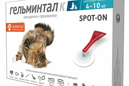 Антигельминтик для кошек ГЕЛЬМИНТАЛ Spot-on 1 пипетка на 4-10кг доставка