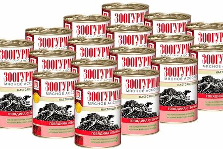 Корм для собак ЗООГУРМАН Мясное ассорти говядина отборная банка 350г (упаковка - 20 шт) доставка