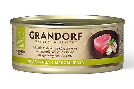 Корм для кошек GRANDORF Филе тунца с мясом краба банка 70г (упаковка - 6 шт) доставка