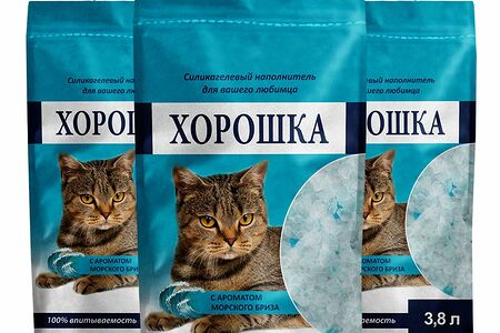 Наполнитель для кошачьего туалета ХОРОШКА силикагелевый с ароматом морского бриза 3,8л (упаковка - 3 шт) доставка