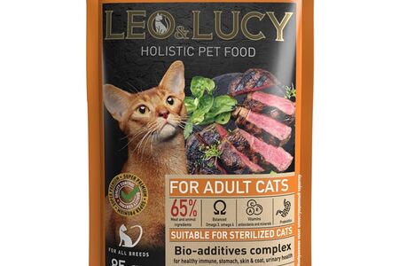 Влажный корм для кошек Leo&Lucy с уткой ягненком и биодобавками подходит для стерилизованных 85г доставка