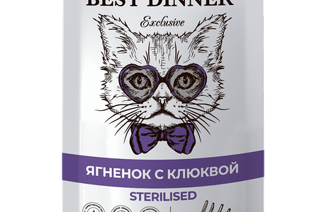 Корм для кошек BEST DINNER Exclusive Sterilised Мусс сливочный ягненок с клюквой пауч 85г (упаковка - 24 шт) доставка