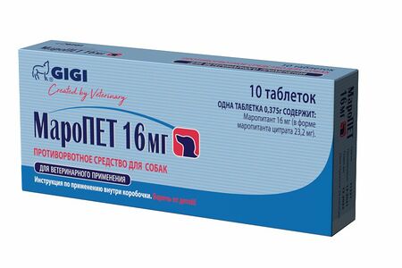 Противорвотное средство GIGI МароПЕТ 16мг, №10 при синдроме укачивания, химиотерапии и других патологиях, связанных с рвотой различного генеза доставка