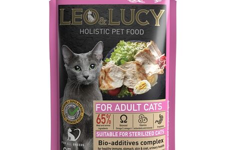 Корм влажный для кошек Leo&lucy кусочки в соусе с индейкой, кроликом и биодобавками 85г, Россия доставка
