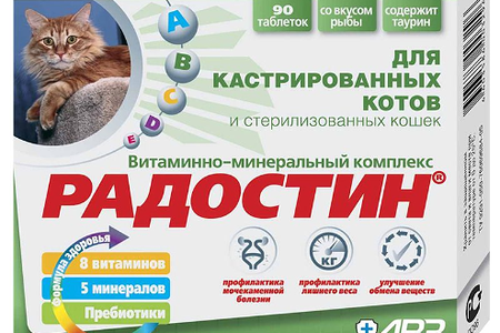 Витаминно-минеральный комплекс Радостин для кастрированных котов и стерилизованных кошек 90 таб. доставка
