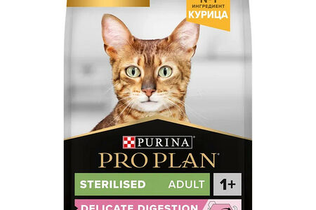 Сухой корм PRO PLAN® Sterilised Adult DELICATE DIGESTION для взрослых стерилизованных кошек с чувствительным пищеварением, с высоким содержанием курицы 3 кг доставка