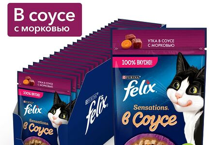 Корм для кошек Felix Sensations соус утка с морковью пауч 75 г (упаковка - 26 шт) доставка