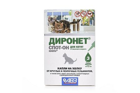 Антигельминтик для котят АВЗ Диронет спот-он для наружного применения 3 пипетки/1уп. доставка