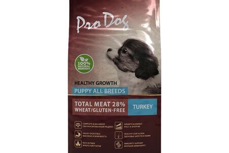 Корм для щенков PRO DOG для всех пород для здорового роста и энергии, индейка сух. доставка