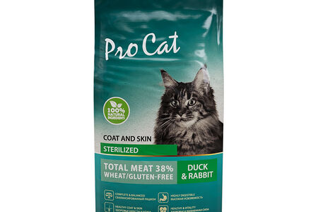 Корм для кошек PRO CAT для стерилизованных для здоровья кожи и шерсти, утка с кроликом сух. 400г доставка