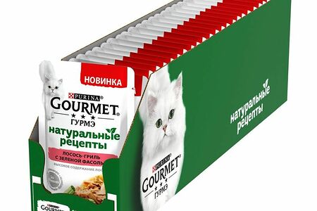 Корм для кошек GOURMET Натуральные рецепты лосось-гриль с зеленой фасолью пауч 75г (упаковка - 26 шт) доставка
