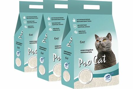 Наполнитель для кошачьего туалета PRO CAT Regular комкующийся экстра белой глины 6кг (упаковка - 3 шт) доставка