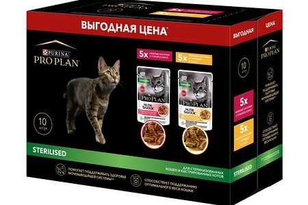 Корм для кошек PRO PLAN Sterilized для стерилизованных, утка с курицей пауч 10x85г НАБОР (упаковка - 4 шт) доставка