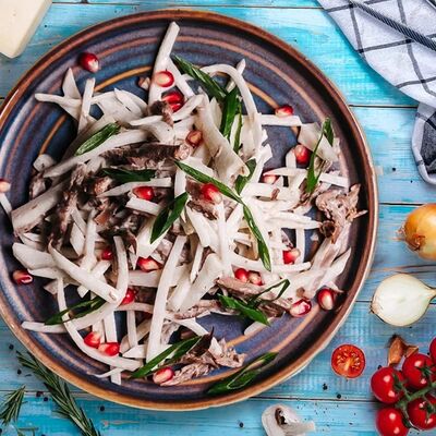 Говядина, колбаса, соленые огурцы, рассол, маслины, каперсы, сметана