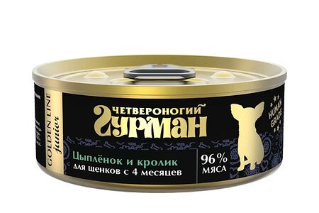Четвероногий Гурман Golden line цыпленок и кролик для щенков 100 г доставка