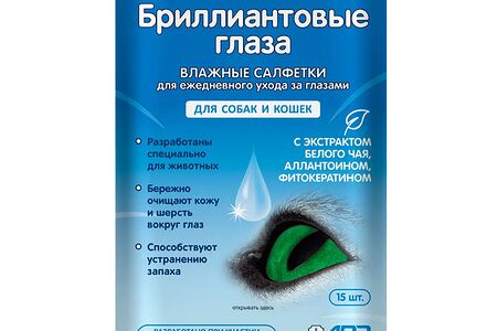Влажные салфетки для ежедневного ухода за глазами животных Бриллиантовые глаза 15 шт доставка