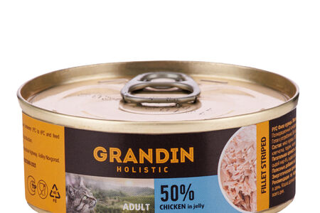 Holistic Консервированный корм Grandin для взрослых кошек курица в желе, 100г доставка