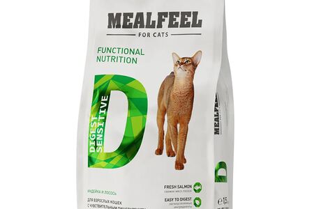 Корм Mealfeel сухой для кошек с чувствительным пищеварением, с индейкой и лососем, 1,5 кг доставка