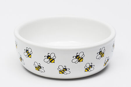 Миска керамическая для грызунов, 10x3,7 см, белая с пчелками доставка