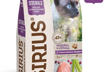 Корм для стерилизованных кошек Sirius Premium Индейка и курица доставка