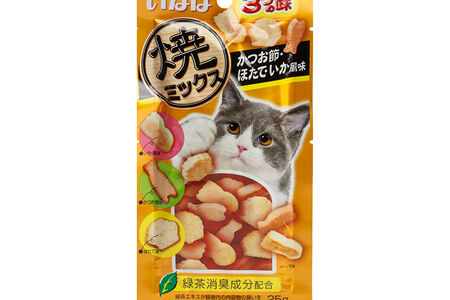 Yakimiksu Лакомство запеченое для кошек, куриное филе со вкусом кацуобуси, морского гребешка и кальмара, 25 гр. доставка