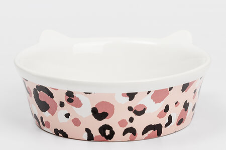 Миска керамическая с ушками для кошек Леопард, 14x5,5 см, белая доставка