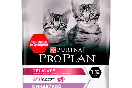 Сухой корм Pro Plan® для котят с чувствительным пищеварением или с особыми предпочтениями в еде, с высоким содержанием индейки, Пакет, 200 г доставка