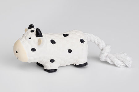 Игрушка из латекса для собак Корова с веревочным хвостом, 10х4х5 см доставка