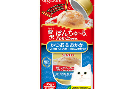Лакомство для кошек суфле Pon Churu Тунец Кацуо и кацуобуси 35гх2 шт доставка