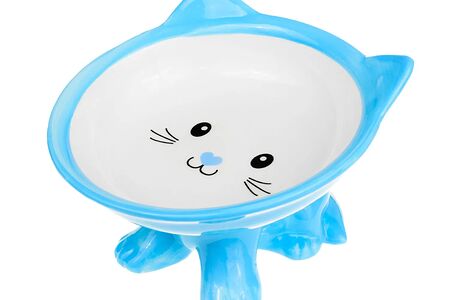 Миска для кошек на лапках с ушками 15см голубая керамика доставка