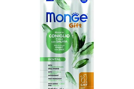 Лакомство для кошек Monge Gift Skin Support Мягкие палочки со свежим мясом кролика и шалфеем для чистки зубов доставка