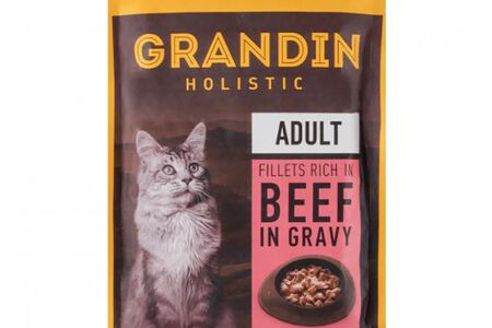 Влажный корм Grandin для взрослых кошек, кусочки с говядиной в соусе без злаков доставка