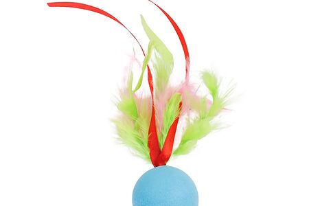 Игрушка для кошек Мячик Нарисуй для кота с пером и лентами, 4 см доставка