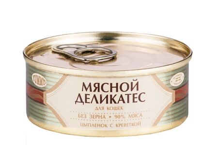 Мясной Деликатес консервы для кошек с цыпленком и креветками, 100 г доставка