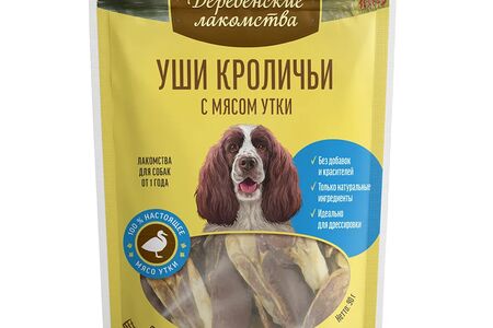 Деревенские лакомства Уши кроличьи с мясом утки, лакомство для собак доставка