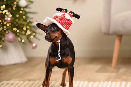 Новогодний колпак для собак от бренда Rurri подойдет для праздничных фотосессий с питомцем.