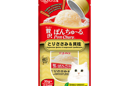 Лакомство для кошек суфле Pon Churu Куриное филе и морской гребешок 35гх2 шт доставка