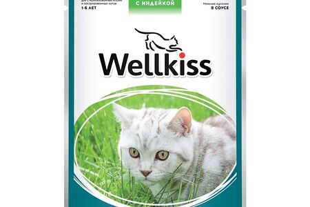 Sterilized влажный корм Wellkiss для стерилизованных кошек, кусочки с индейкой в соусе доставка