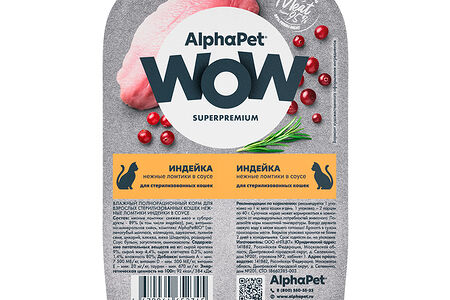 ALPHAPET WOW SUPERPREMIUM для стерилизованных кошек ламистер, индейка доставка