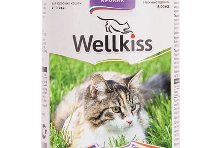 Adult консервированный корм Wellkiss для взрослых кошек, с кроликом в соусе доставка