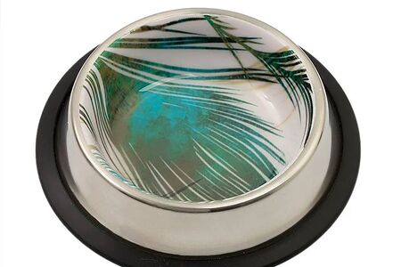 Миска для кошек металлическая с листьями резиновое основание 240мл доставка