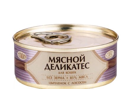 Мясной Деликатес консервы для кошек с цыпленком и лососем, 100 г доставка