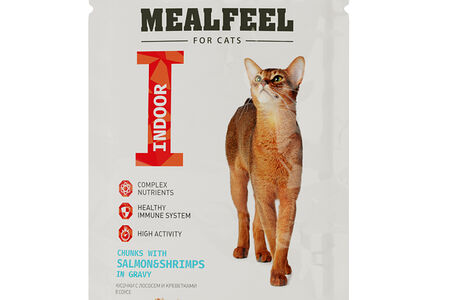 консервированный корм Mealfeel для взрослых кошек лосось и креветки в соусе с кусочками куриного филе доставка