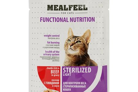 Functional Nutrition Sterilized Light Влажный корм Mealfeel (пауч) для стерилизованных кошек Контроль веса, с кусочками говядины в соусе, 100 гр. доставка